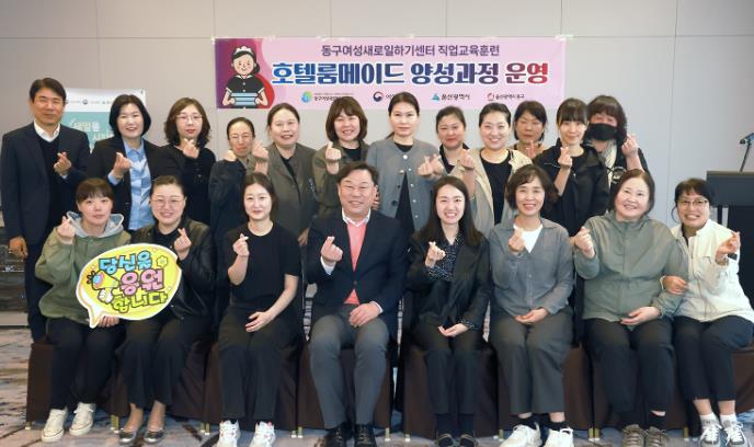 이날 김종훈 동구청장은 현장실습 교육장인 타니베이관광호텔을 방문해 결혼, 임신, 육아 등으로 직업 현장을 떠났다가 다시 새로운 도전에 나선 훈련생들을 응원하고 격려했다.
