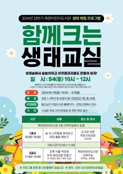 | ▲ 울산 남구 옥현어린이도서관, 상반기 생태 체험 프로그램 모집 |