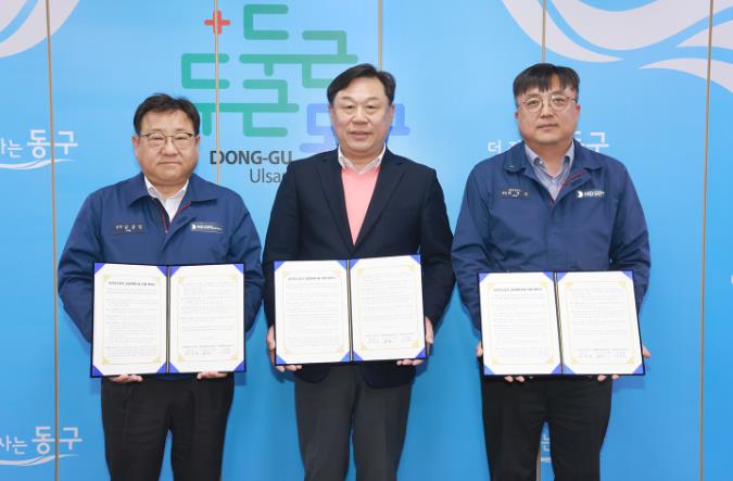 [뉴스서울] 울산 동구는 4월 8일 오후 2시 구청장실에서 김종훈 동구청장, 김동일 HD현대중공업(주) 전무, 김창환 HD현대미포(주) 상무 등 관계자들이 참석한 가운데 외국인노동자 공공체육시설 이용 및 사용료 감면 협약을 체결하였다.
