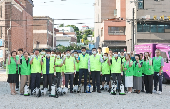 김정헌 구청장은 이날 직접 휴대용 연무 방역기를 메고, 보건소 방역기동반, 주민자율방역단과 함께 공원, 주택가 골목, 하수구 등 동네 취약지역을 중심으로 구석구석 연무 방역을 진행했다.