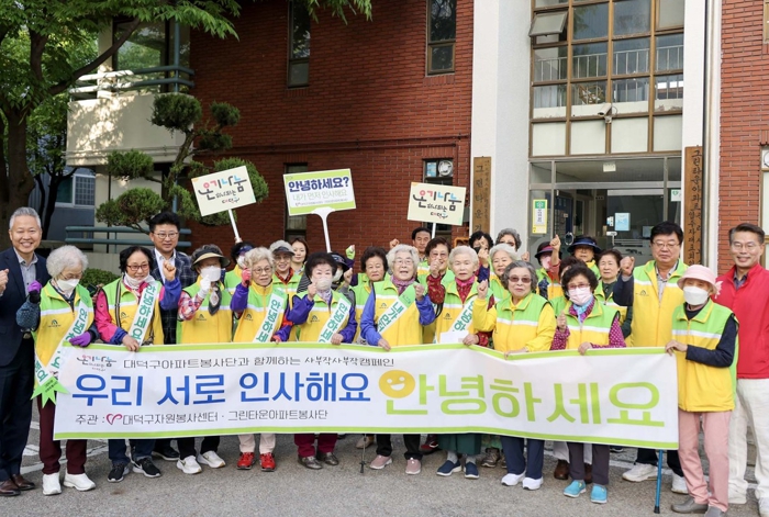 [뉴스서울] 대전 대덕구는 지난 10일, (사)대덕구자원봉사센터와 그린타운 아파트봉사단이 ‘사부작사부작 운동’의 1부인 ‘내가 먼저 인사해요’ 운동을 했다고 밝혔다.