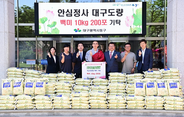 [뉴스서울] 안심정사 대구도량은 지난 14일 불기 2568년 부처님 오신 날을 기념해 10kg 백미 200포를 동구청에 기탁했다.