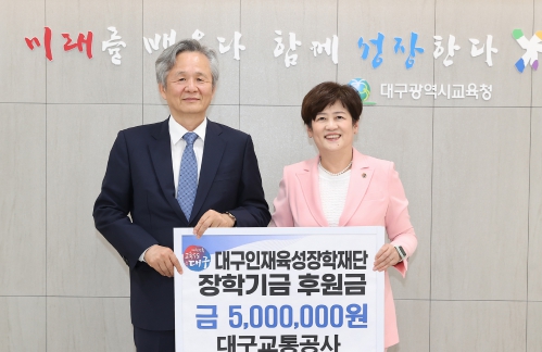 [뉴스서울] 대구시교육청은 지난 4월 25일, 대구교통공사에서 대구인재육성장학재단에 장학금 5백만 원을 기탁했다고 밝혔다.