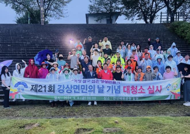 강상면민의 날에 체육대회와 문화행사를 함께 개최하는 것은 2018년 이후 6년 만으로, 오는 9월 7일 개최한다. 이에 따라 쾌적한 행사장 환경을 제공하기 위해 강상면 각 기관·단체 및 직원 등 100여 명은 이른 아침 한마음으로 대청소에 나섰다.
