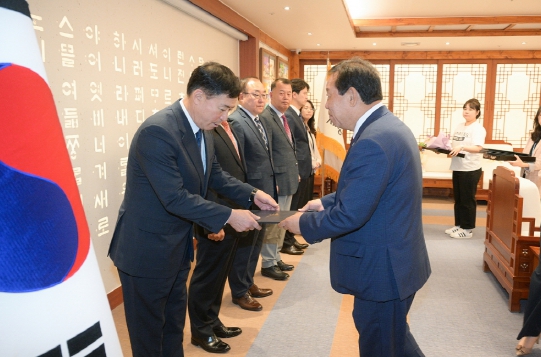 최민호 시장은 27일 시청에서 제2기 세종자치경찰위원회 위원들에게 임명장을 수여했다.