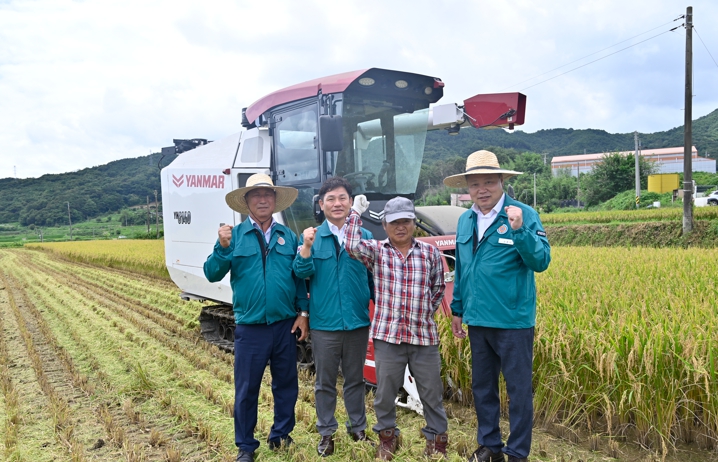 ▲ 순창군의회 손종석 의장, 풍산면 첫 벼수확 현장 방문 |