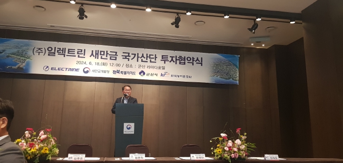 협약식에는 김경안 새만금개발청장, 김종훈 전북자치도 경제부지사, 강임준 군산시장, 안재호 한국농어촌공사 단장, 원준희 ㈜일렉트린 대표 등이 참석했다.