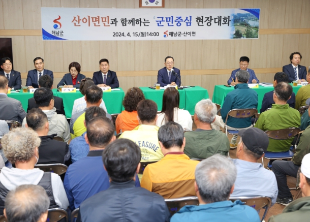 [뉴스서울] 해남군은 지난 15일 산이면을 시작으로 14개 읍면을 순회하는 군민중심 현장대화를 갖는다. 이번 현장대화는 읍·면민의 날 행사와 병행하여 추진된다.