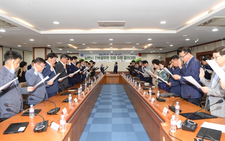 [뉴스서울] 남원시가 26일 시청 회의실에서 시민에게 신뢰받는 청렴한 공직문화 조성을 다짐하는 간부공무원 청렴 자정 결의대회를 개최했다.