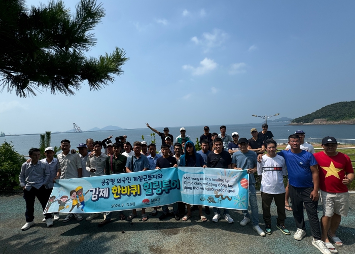 [뉴스서울] 김제시는 13일 공공형 외국인 계절근로자 40명이 참여한 가운데 김제 한바퀴를 도는 새만금 코스 탐방과 백산 조수골 농촌체험휴양마을에서 한국문화를 체험하며 즐기는 힐링투어를 개최했다고 밝혔다.