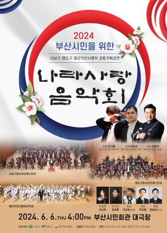 [뉴스서울] 부산 사상구와 영도구, 해군작전사령부 군악대는 현충일을 맞아 오는 6월 6일 오후 4시 부산시민회관 대극장에서 2024 부산시민을 위한 ‘나라사랑 음악회’를 개최한다.