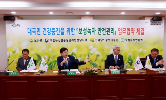 [뉴스서울] 보성군과 국립농산물품질관리원 전남지원은 26일 전라남도 농업기술원, 보성녹차연합회와 함께 보성군청 소회의실에서 대국민 건강 증진을 위한 ‘보성녹차 안전관리’ 업무 협약을 체결했다고 밝혔다.