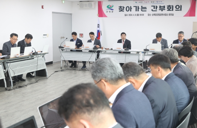 [뉴스서울] 고성군은 8일 이상근 고성군수를 비롯한 간부 공무원 30여 명이 참석한 가운데 상족암군립공원사업소에서 ‘2024년 4번째 찾아가는 간부회의’를 개최했다고 밝혔다.
