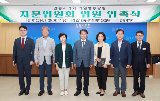 [뉴스서울] 안동시의회는 25일 법조계, 언론계, 시민사회 등 각계 전문가 7명으로 구성된‘안동시의회 지방의회의원 행동강령 운영 자문위원회 위원 위촉식’을 개최했다.