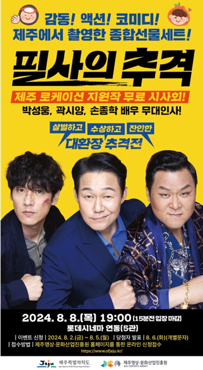 [뉴스서울] 오는 8일 19시 롯데시네마 연동에서 제주특별자치도와 제주영상‧문화산업진흥원의 로케이션 지원 작품 영화'필사의 추격(감독: 김재훈)'이 제주에서 시사회를 개최한다.