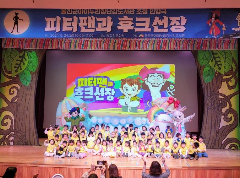 [뉴스서울] 울진군아이누리도서관은 지난 24일 왕피천문화관에서 관내 어린이집 영유아 320여명을 대상으로 인형극 “피터팬과 후크선장” 공연을 개최했다.