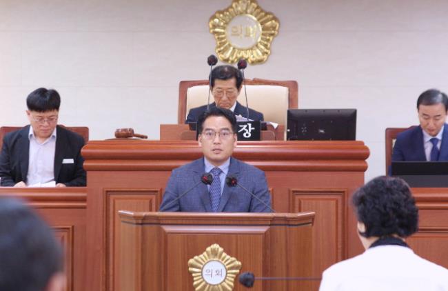 한국희 의원은 '지방도 721호선 도로개선 및 산서 하월리 축사 악취 해소 방안'에 대해 군정질문을 했다.
