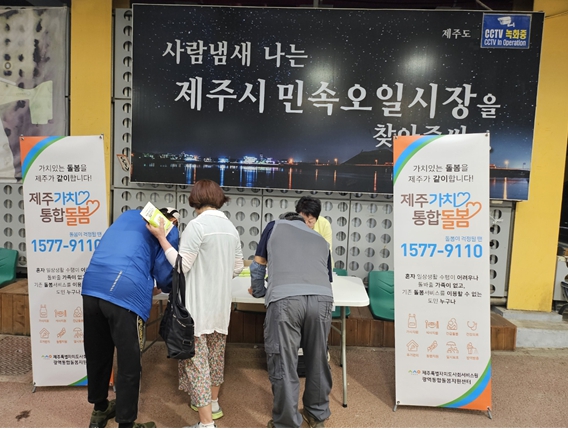 이번 홍보는 오일장을 이용하는 제주도민을 상대로 도민 누구나 이용할 수 있는 보편적 통합돌봄 서비스 이용자 확대, 복지체감도 제고 및 돌봄 사각지대 발생 예방을 위해 진행됐다.