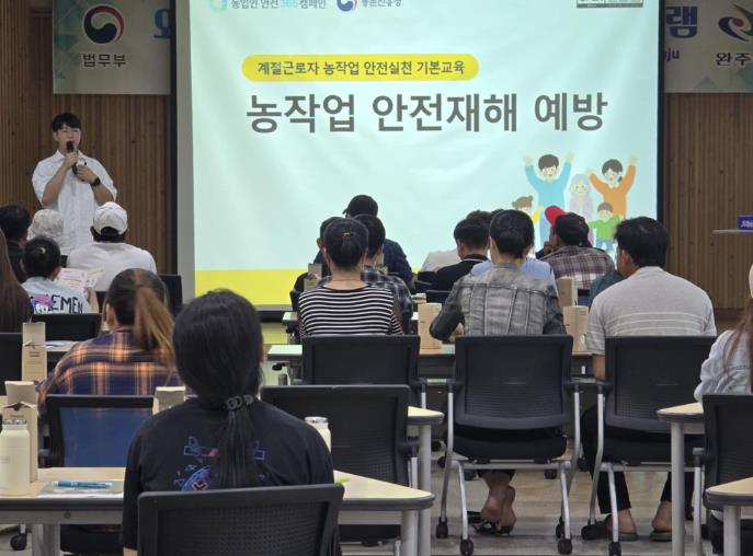 이번 교육은 총 3차시로 구성돼 1, 2차시에는 법무부 파견 강사가 외국인 계절근로자들이 한국생활에 안정적으로 적응할 수 있도록 대한민국 법·질서, 생활정보 및 무단이탈 방지 등에 관한 사항을 교육했다.
