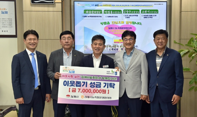 정성주 김제시장은 “어려운 이웃들을 위해 따뜻한 나눔 활동을 펼쳐준 김제시 농·축협운영협의회에 감사드리며, 기탁해 주신 성금은 지역 내 저소득 가정과 취약계층에 잘 전달하겠다”고 말했다.