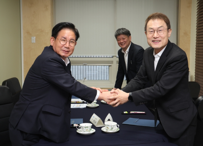 ▲ ‘유보통합’ 추진 간담회(박강수 마포구청장과 조희연 서울시교육감) |
