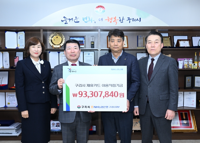 [뉴스서울] 구리시는 지난 27일 시장집무실에서 NH농협은행 구리시지부와 2023년도 NH농협카드 이용에 따른 적립금 전달식을 가졌다.