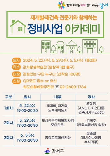 [뉴스서울] 서울 강서구는 ‘재개발·재건축 전문가와 함께하는 정비사업 아카데미’를 개최한다고 밝혔다.
