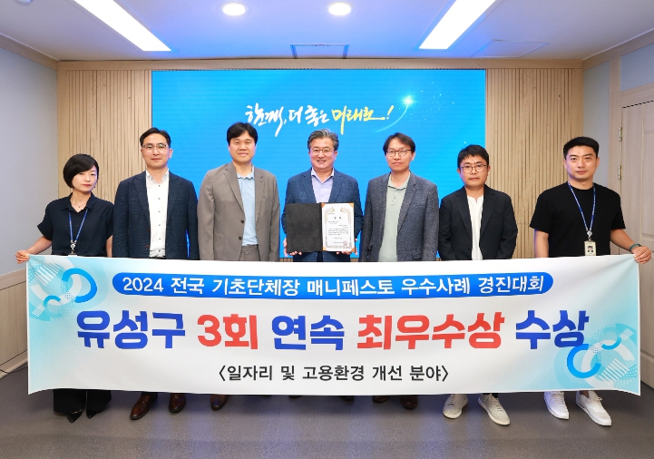 [뉴스서울] 대전 유성구는 2024 전국 기초단체장 매니페스토 우수사례 경진대회에서‘일자리 및 고용환경 개선’분야 우수사례를 발표해‘최우수상’을 수상했다고 5일 밝혔다.