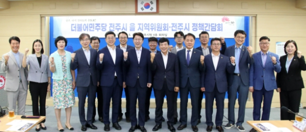 시와 더불어민주당 전주시을 지역위원회는 5일 전주시청 회의실에서 우범기 시장과 이성윤 국회의원, 김희수 전북자치도의회 부의장을 비롯한 도·시의원 등이 참석한 가운데 정책간담회를 개최했다.