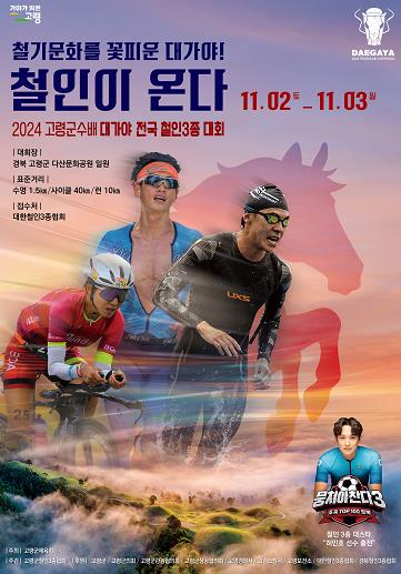 [뉴스서울] 고령군은 오는 11월 2일부터 3일까지 다산면 다산문화공원과 은행나무 숲 일원에서 개최되는 ‘고령군수배 2024 대가야전국철인3종대회’ 참가선수 모집이 7월 31일 신청 첫날 7시간 만에 조기 마감되었다고 밝혔다.