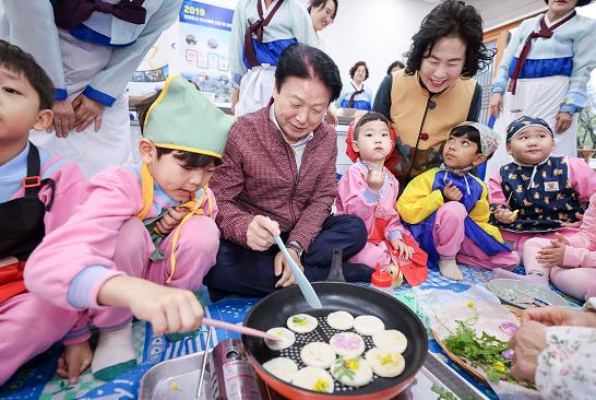촉촉하게 봄비가 내리는 가운데 여성유도회의 주관으로 열린 이날 행사에는 관내 어린이집 원생 등 50여명이 참석하여 봄꽃을 얹은 화전을 직접 만들며 전통놀이 체험과 더불어 따스한 봄기운을 만끽하는 기회를 가졌다.