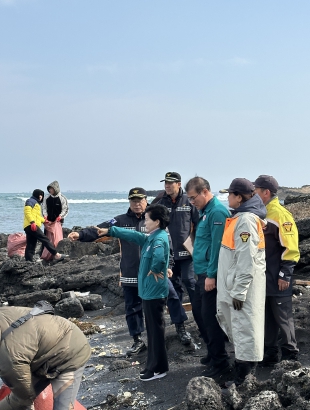 [뉴스서울] 김애숙 제주특별자치도 정무부지사는 2일 구좌읍 하도리 토끼섬 인근 해상에서 발생한 어선 좌초 사고 현장을 방문해 실종자 수색상황을 점검하고 수색에 힘쓰는 이들을 격려했다.