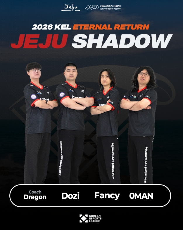 해당 팀은 제주를 대표하는 이스포츠 팀으로서‘Jeju Shadow’라는 새로운 이름으로 재편되어 이번 3월부터 본격적인 활동을 시작했으며, 특히 최근 이터널 리턴 마스터즈 시즌 10에서 페이즈2 파이널에 진출하는 성과를 거두며 경쟁력을 입증한 바 있다.