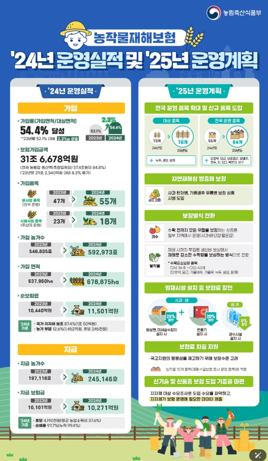 ▲ 농작물재해보험 2024년 운영실적 및 2025년 운영계획 |