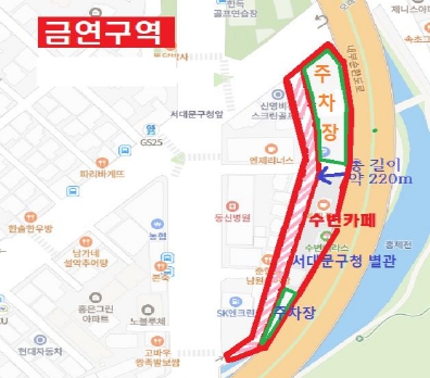 ▲ 서대문구가 새롭게 지정한 ‘서대문 카페 폭포’ 주변 금연구역 |