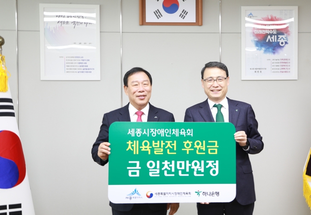 [뉴스서울] 하나은행이 15일 지역 장애인 체육 발전을 위해 세종특별자치시장애인체육회(회장 최민호)에 발전 기금 1,000만 원을 기탁했다.