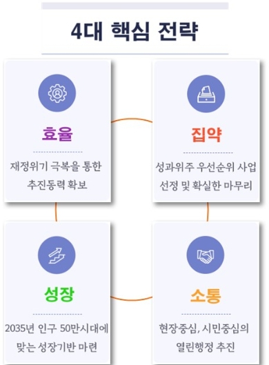 세입 확충 및 세출 혁신을 통한 재정 효율화를 꾀하고 공모사업 사전검토 및 시급성과 예산 대비 사업을 재검토하는 등 시 자체적인 재정혁신을 추진한다.