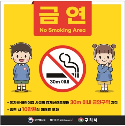 [뉴스서울] 구리시는 아동·청소년의 건강권 확보를 위해 오는 8월 17일부터 어린이집 및 유치원, 초·중·고등학교의 금연 구역이 본격적으로 확대 시행된다고 밝혔다.