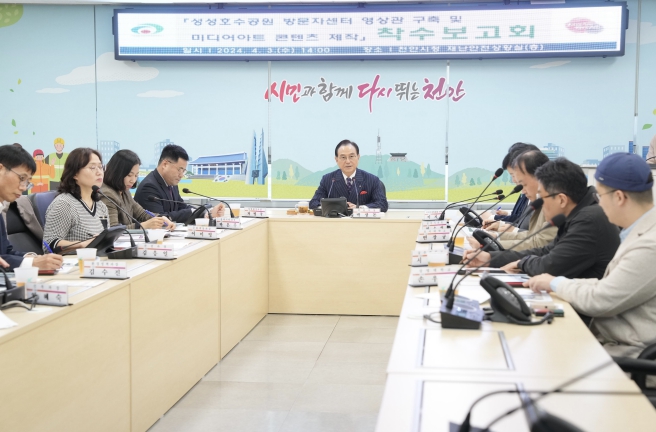 ▲ 천안시는 3일‘성성호수공원 방문자센터 영상관 구축 및 미디어아트 콘텐츠 제작’ 용역 착수보고회를 개최했다. |