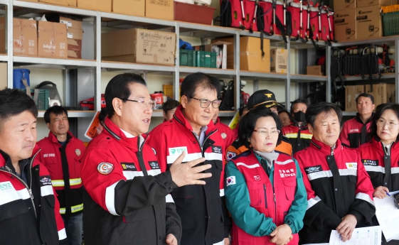 김영록 지사는 이날 진화차와 장비 상태 등을 점검하고 지난해 4월 대형산불 발생 시 인명피해 없이 진화에 최선을 다해준 진화대원을 격려하고, 안전한 진화체계 구축을 강조했다.