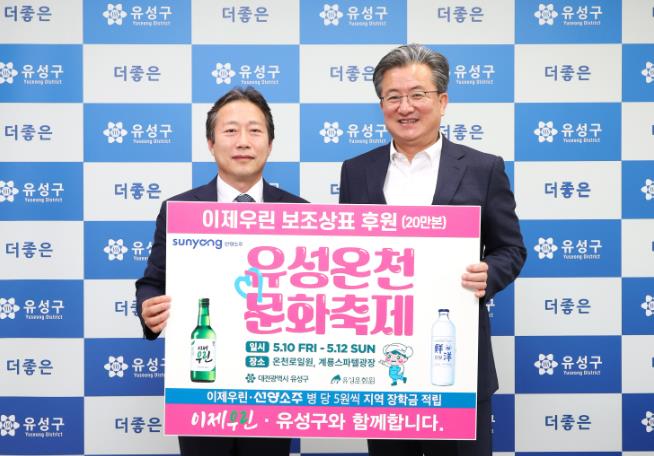 [뉴스서울] 대전 유성구가 대전·충남 대표 주류기업인 ㈜선양소주와 5월 10일부터 3일간 온천로 및 계룡스파텔 일원에서 개최하는 유성온천문화축제 홍보를 위한 이제우린 소주병 보조라벨 후원식을 개최했다.