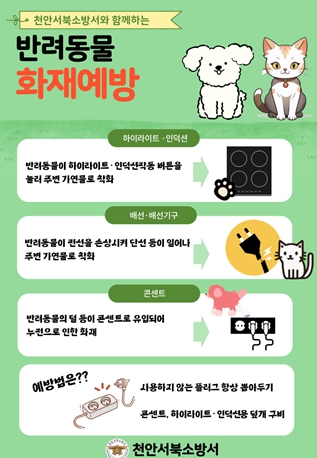 [뉴스서울] 천안서북소방서는 반려동물을 키우는 가구가 늘어남에 따라 반려동물로 인한 화재 예방에 주의를 당부한다고 전했다.