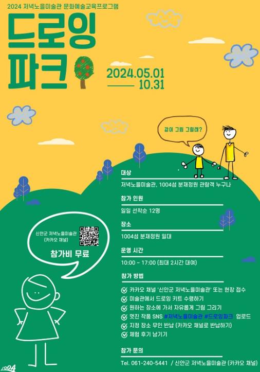 [뉴스서울] 신안군 저녁노을미술관은 다가오는 5월부터 10월까지 화구 대여 프로그램 《드로잉 파크》를 실시한다고 밝혔다.