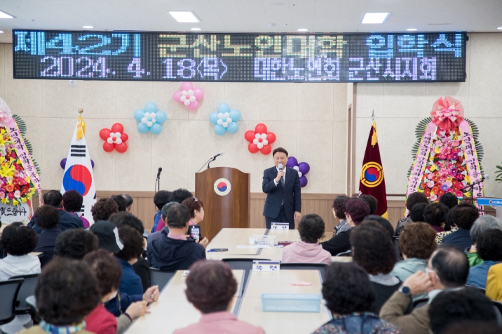 [뉴스서울] 18일 군산시 노인회관 3층 대강당에서 2024년 제42회 노인대학 입학식이 강임준 군산시장을 비롯한 내외빈과 120명의 신입생이 참석한 가운데 거행됐다.