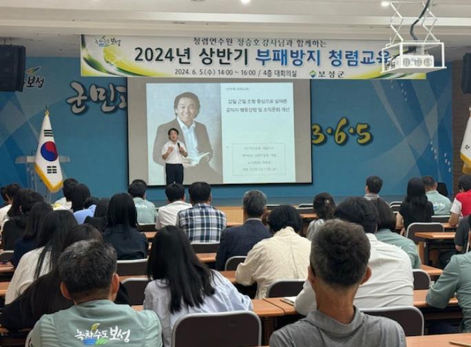 [뉴스서울] 보성군은 지난 5일 군청 4층 대회의실에서 공직자 180여 명을 대상으로 ‘2024년 상반기 부패 방지 청렴 교육’을 실시했다고 밝혔다.