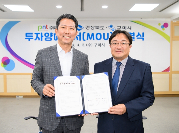 [뉴스서울] 구미시는 3일 시청에서 김장호 구미시장, 황중하 경북도 투자유치실장, ㈜피엔티 관계자 등이 참석한 가운데 구미국가산업단지(구미하이테크밸리 1단계) 내 공장 신설을 위한 투자양해각서(MOU)를 체결했다.