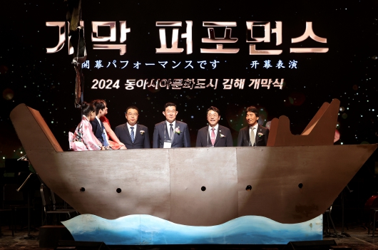 또 중국 웨이팡시 쉬레이 부시장, 다롄시 짱샤오펑 부비서장, 일본 무나카타시 코우노카츠야 부시장, 진일표 중국 총영사관 등 한중일 동아시아문화도시 주요 인사들이 대거 참석했다. 중국 웨이팡시와 다롄시, 일본 이시카와현은 김해시와 함께 2024 동아시아문화도시로 선정됐다. 다만 이시카와현은 올 초 발생한 강진 피해 복구로 참석이 어려워 김해시의 자매도시인 무나카타시가 개막식을 함께했다.