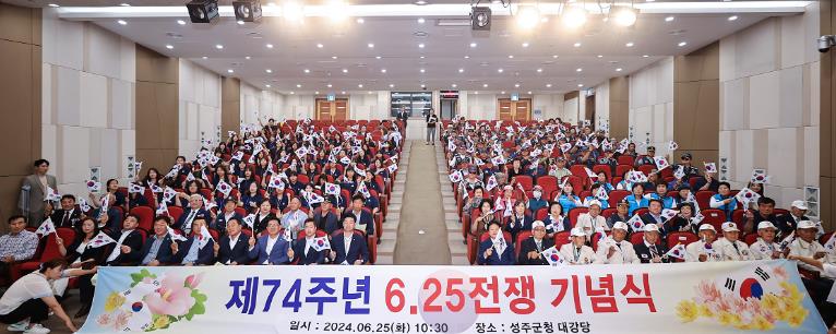 [뉴스서울] 성주군에서는 6.25전쟁일을 맞이하여 성주군보훈단체연합회 주관으로 6.25참전유공자 외 보훈단체 회원 및 학생 등 200여명이 참석한 가운데 군청 대강당에서 6.25전쟁 제74주년 기념행사를 개최했다.