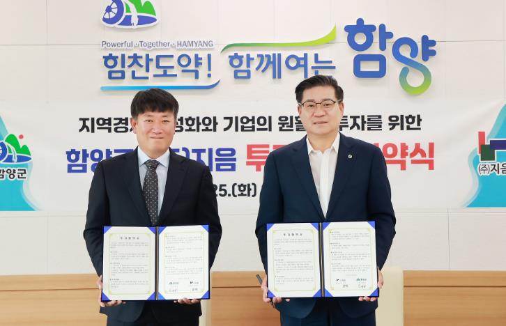 [뉴스서울] 함양군은 6월 25일 ㈜지음과 양자 간 투자유치 협약(MOU)을 체결했다.