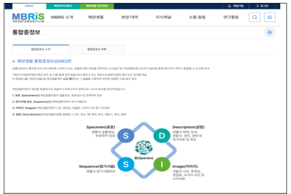 ▲ 해양생명자원 통합종정보(SSID) 서비스 |
